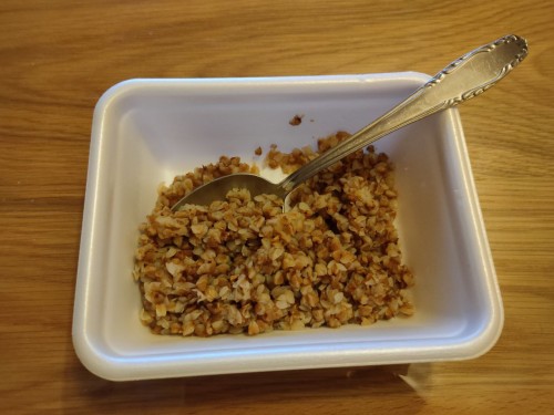 Теперь перехожу на жёсткую диету. Гречка каждые 2 часа. Буду кушать горсть гречки по таймеру. Это дробное питание, которое разгонит мой метаболизм до экстремальных значений.